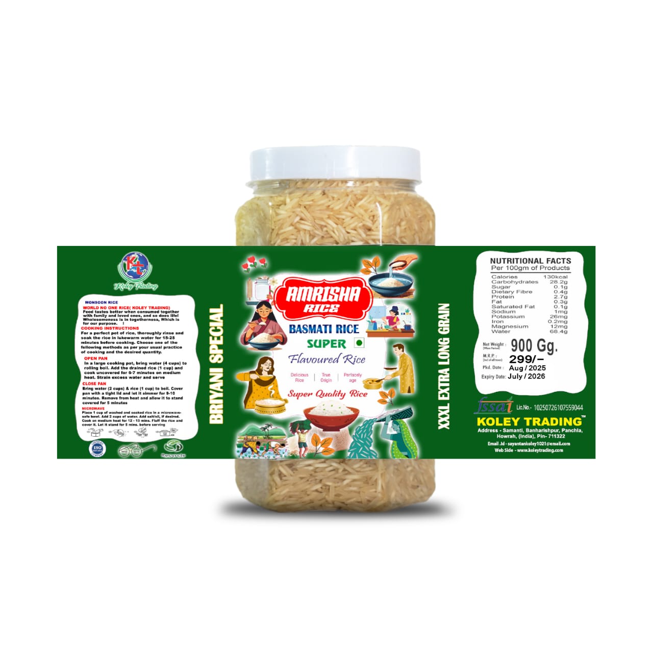Packed with nutrition, including carbohydrates for energy, dietary fibre for digestion, and essential minerals like potassium and magnesium, Amrisha Rice is both healthy and delicious. Processed with care and distributed by Koley Trading, this rice brings the authentic taste of India to your kitchen.